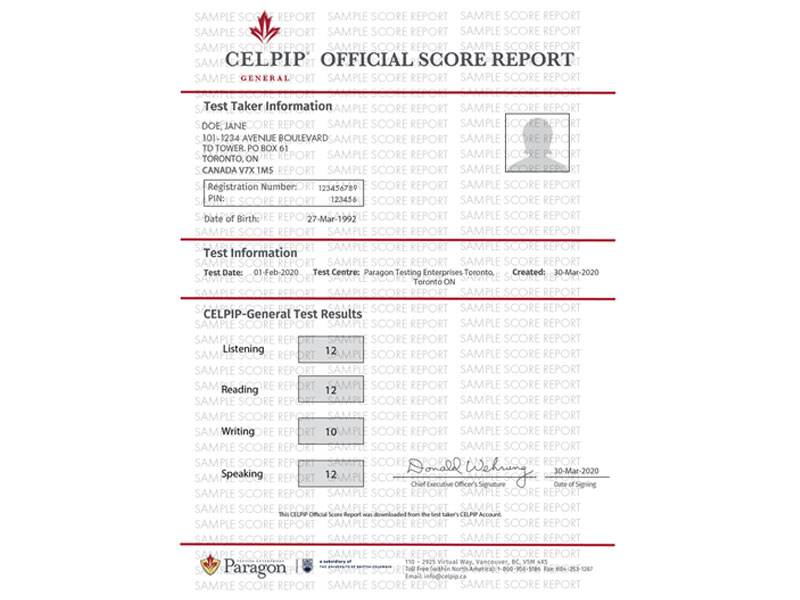 - اعتبار نتایج آزمون: نتایج آزمون CELPIP به مدت ۲ سال معتبر است.
