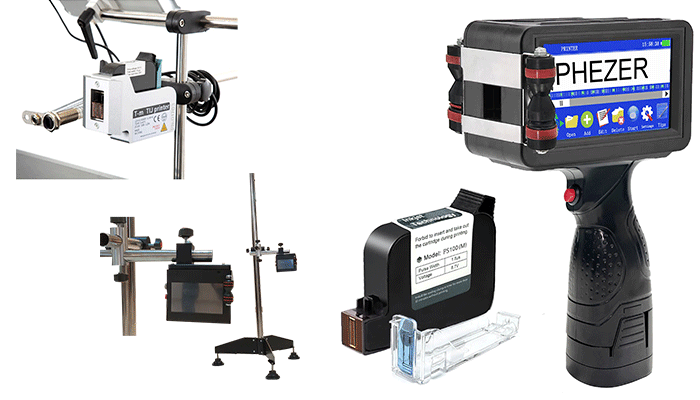 | جت پرینتر دستی (قابل حمل) | وزن سبک- حمل و نقل آسان- بدون سنسور (نیاز به تنظیم دستی توسط اپراتور)- چاپ اطلاعات با فشار دادن دکمه | چاپ اطلاعات روی محصولات با حجم و وزن زیاد- چاپ اطلاعات متغیر و به روز در انبارها |